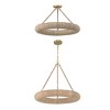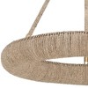 Elevate your space with the Oakley ring chandelier, an artisan masterpiece that blends natural charm with exquisite craftsmanship. With its open-top design, this chandelier infuses a room with a soothing and relaxed ambiance, directing light upward while casting a soft, filtered glow downward. Crafted from natural Lake Grass in a warm, neutral tone, this fixture showcases intricate hand-wrapped details that add depth and character, reflecting the essence of skilled artisans. With dual mounting options, it effortlessly adapts to any space. Oakley collection features a versatile farmhouse / rustic design. / A breezy, light-filled style that blends soft hues, natural materials, and nautical touches for a relaxed, seaside-inspired feel. / Integrated dimmable 20W LED panel. CCT selectable to a rated color temp of 2700K or 3000K. 2000 lumens and a CRI 90 rating. / Soft Gold metal tones showcase a light and airy feel that work well with transitional settings. / 24"W x 3.5"H x 24"D / 1 light