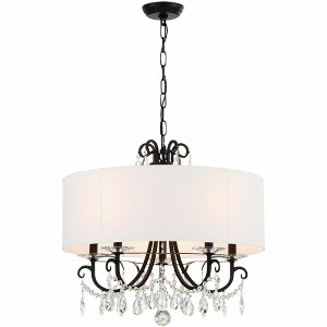 Material: Silk, Finish Color: Matte Black, Width: 24", Height: 21", Depth: 24", Chain Length: 72", Lamping Type: Incandescent, Number Of Bulbs: 5, Wattage: 60 Watts, Dimmable: Yes, Moisture Rating: Damp Rated