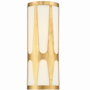 The strikingly stylish Royston collection boasts an artsy metal pattern overlay creating its intriguing profile. An inner white glass shade helps cast a soft illumination to its surroundings. The Royston is a perfect marriage of classic and modern. Royston collection features a versatile modern / contemporary design. / A relaxed blend of rustic charm and modern comfort, featuring natural textures, neutral tones, and vintage-inspired accents. / Can be mounted vertically or horizontally. Intergrated LED. / Antique Gold metal finish is a popular choice with homeowners. The finish has a rich color and texture with warm undertones. / 6.75"W x 17.75"H x 3.5"D / 1 light 20- watt, Integrated LED base / Steel + Glass / Authorized for use in damp, high-humidity interior locations or protected exterior locations. Meets United States UL Underwriters Laboratories Product Safety Standards / The Royston collection comes in two finishes and a variety of sizes.. ,