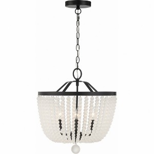 A traditional Empire shape meets modern elements in Crystorama's Rylee Collection. A circular-shaped hand-painted frame gives this fixture a vintage, distressed look, while the beads lend to a bohemian style flare. The Rylee creates a rich visual impact on any space in a perfect combination of texture and materials. Rylee collection features a versatile farmhouse / rustic design. / A breezy, light-filled style that blends soft hues, natural materials, and nautical touches for a relaxed, seaside-inspired feel. / The white metal mixed with the white wooden beads gives it a great chic look. / Matte white metal finish pairs well with any d�cor style. The velvety, non-glossy sheen offers a dramatic contrast to a room. / 16.5"W x 18"H x 16.5"D / 4 light 60- watt, E12 Candelabra base / Steel + Wood / Authorized for use in damp, high-humidity interior locations or protected exterior locations. Meets United States UL Underwriters Laboratories Product Safety Standards / The beaded beauty of the