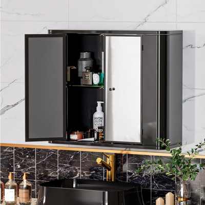 CSBDHome LED Lighted Aluminum Bathroom Mirror Cabinet with Adjustable Shelves, Demister, and IP44 Waterproof Rating
