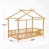 With its natural wood finish and child-friendly design, this charming house-shaped bed transforms any room into a cozy and creative sanctuary for kids. A child's imagination will be stimulated by the lively and welcoming environment created by the roof-like beams on top. Little children may still easily access the bed's framework, which features modest side guardrails to provide a safe sleeping place. The house frame is a great focal point or a comfortable corner in a child's bedroom because of its open and airy design, which can be customized with fabric, lighting, or other decorative features. It is about the height of 4 inches from the ground and a sturdy frame, this bed is ideal for children aged 2 to 7 years old.