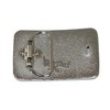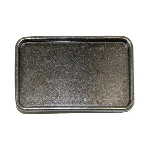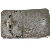 A versatile belt buckle that can be worn blank, or can be taken to be engraved. Measuring 2 by 3 inches it is large enough to catch attention and fit whatever you would like in the center. The edges are raised for a frame like appearance. The back has a metal loop to attach to the belt and a prong. Made of Metal