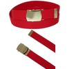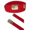 Constructed with durable cotton web fabric this belt has a classic look and feel. The military buckle is brass, as is the matching end piece. The buckle is clamped on, you can pry it off and cut the belt down to size. Fully adjustable and 1.25 inches wide. Made of Cotton