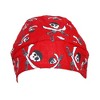 Do rag is often used for holding hair in place or underneath a helmet. The cartoon pirate with crossed swords print is featured on a red background. The eight inch long ties keep cap secure in place. The lightweight cotton is great for all year weather for men or women. The skull cap is one size fits most up to 24 inches. Made of 100% Cotton