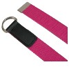 Durable cotton web fabric is 1.25 inches wide and very durable. The end tab and the double D ring buckle are polished nickel. The tab by the buckle is leather for a finished look. A simple yet great fabric belt for any outfit. Fully adjustable to 42 inches. Made of Cotton