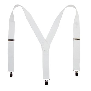 These solid white suspenders are a great way to accessorize your casual or dressy ensemble. They are perfect for a groom or groomsmen to wear for a wedding, or to dress up for a school dance. Made of 100% Elastic