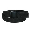 Constructed with durable cotton web fabric this belt has a classic look and feel. The military buckle is matte black, as is the matching end piece. The buckle is clamped on, you can pry it off and cut the belt down to size. Fully adjustable and 1.25 inches wide. Made of Cotton