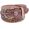 Featuring cute floral patterning and all over stitching this the perfect every day belt. Whether you are styling your little one with jeans or adding an accent to a sun dress this belt is a classic piece for any occasion. The removeable buckle allows the possibility for a fun twist on an adorable style. This belt is hand painted and handmade in Mexico so the hand painted coloring is unique to each belt. Made of Genuine Leather