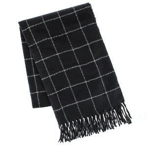 CTM Grid Pattern Soft Winter Scarf with Fringe, Black