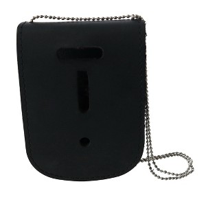 CTM Leather Curved Rectangle Badge Holder Wallet with Back ID Window and Neck Chain - 1 of 4
