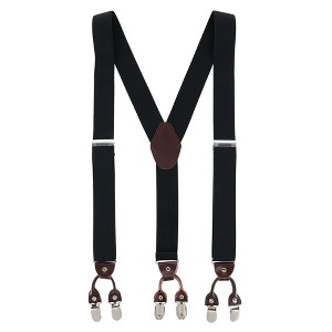 These double clip-end suspenders are the perfect addition to your wardrobe. The solid color provides a versatile look, perfect for accessorizing a dressy or casual wardrobe. Made of Elastic