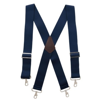 These suspenders are a trucker style that clip to your belt loops on the front sides of your pants. There are no clips in the back which helps relieve any discomfort while sitting. Made of Elastic