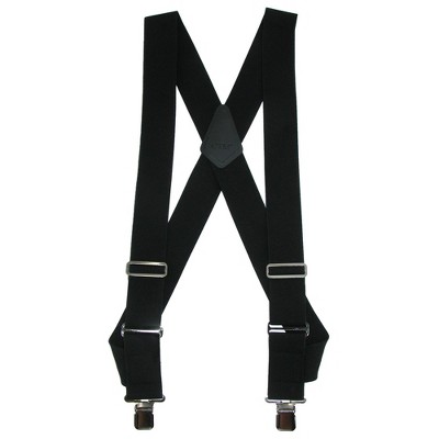 These suspenders are a trucker style that clip to your belt loops on the front sides of your pants. There are no clips in the back which helps relieve any discomfort while sitting. Made of Elastic