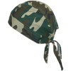 There is no need to camouflage yourself when wearing this stylish camo biker cap. Lined skull cap has 100% nylon aerated mesh liner to wick moisture and can easily be worn under helmet, hats or by itself. Cap features eight inch ties for a secure fit. Men and women of all ages can wear this useful head wrap. One size fits most up to 23 inches. Made of Cotton Blend