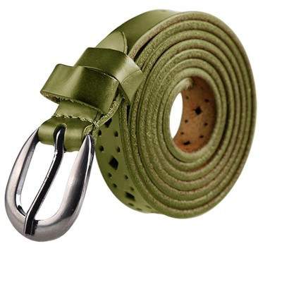 Distressed leather and antique finish buckle gives the belt a comfortable look and feel. Perforations are featured on the keeper, and in two rows on part of the belt for a special look. One piece bridle construction with raw edges. For the best fit, please take your pant size and go up one (if you wear a size 34 or 35, order a 36 belt). Made of Leather