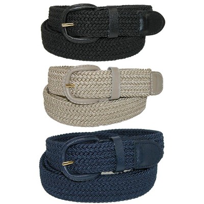 CTM Men's Elastic Braided Belt with Covered Buckle Pack of 2
