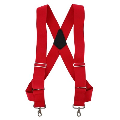 - Y-back button end style 1.5 inch wide suspenders with leather back patch
