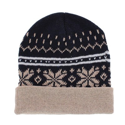 CTM Men's Snowflake Pattern Winter Knit Beanie Hat