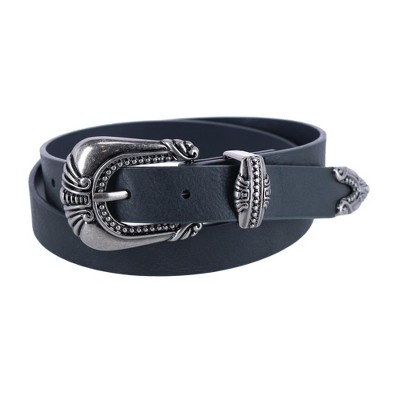 Classic and timeless dress belt that is a great go to for any outfit. Versatile in its simplicity, the belt is solid colors and features a polished silver finished buckle. Two loops are featured for security and fashion. Made of Leather