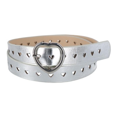 Add a decorative touch this holiday season with this dreamy metallic star belt. Slide into place perfectly with its roller buckle. Its star punched notches add a unique touch that is sure to spruce up any holiday outfit. This belt is adjustable and one size fits most up to 39 inches. Made of Synthetic