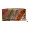 Introducing our Women's Vegan Leather Rainbow Striped Wallet, a vibrant and eco-friendly accessory that combines style with sustainability. Made from high-quality, cruelty-free vegan leather, this wallet showcases a stunning rainbow stripe design, bringing a pop of color to your everyday essentials. Interior has 8 card slots, 1 zipper pocket, 2 bills slots, and 3 pocket slots for organization and a secure zip-around closure, it is as practical as it is stylish. The smooth, durable material is easy to clean and built to last, making it the perfect companion for daily use or special occasions. Stand out with this chic, colorful wallet that celebrates individuality and mindful choices. Measures 7.5 x 4 x 1 inches. Made of 100% PU