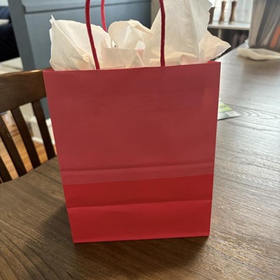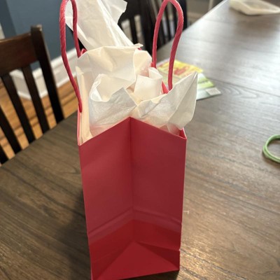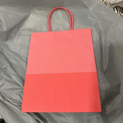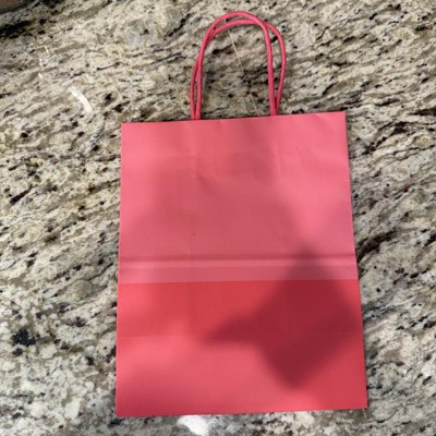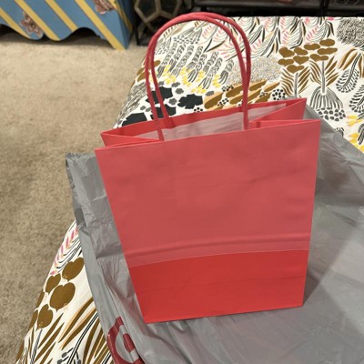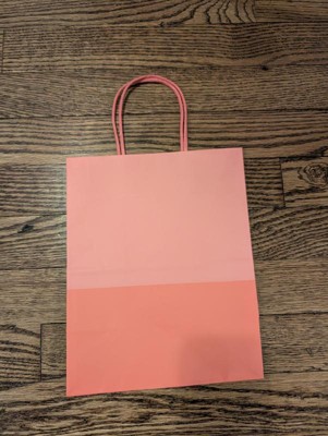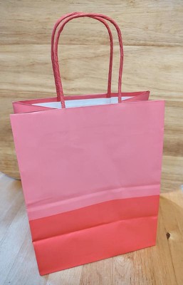 We love the Spritz gift bags from Target. This one in particular is two toned pinks with a light hot pink and dark hot pink. The size is also perfect for lots of gifts like candles, lotions, etc. Bag material is better than a paper bag too.