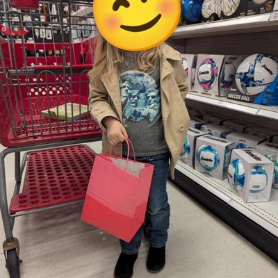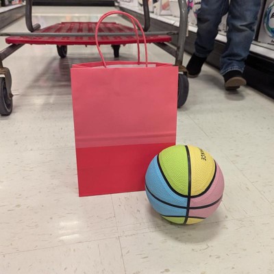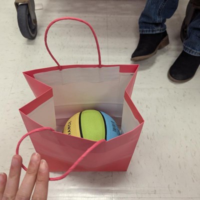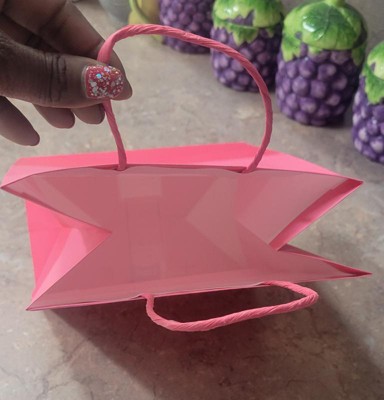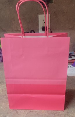 [This review was collected as part of a promotion.] Cute little pink gift bag it is multi tones pink, so adds a little flare than just plain pink. While the size of the bag is slightly smaller, it can still fit a good amount. We put a little basketball inside of it for a gift, and it fit just fine with no issues. My 4 year old was very excited to be able to carry the gift herself. It is just the perfect little size for her. It is paper though, so potentially it could tear. Just be mindful of that. I received an incentive to write this review.