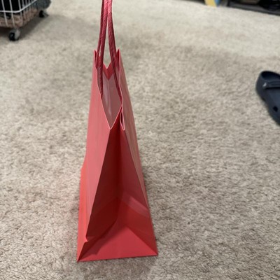This Small Gift Bag Pink Two Color Block is cute. It is made from heavy paper so it feels pretty sturdy. The dimensions of the gift bag are 7.75 in x 4.75 in x 9.75 in so it is a good size for being considered small.