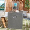 Elevate your space with the Cube Indoor/Outdoor Modern Concrete Accent Stool, designed with a sleek 16.5-inch height in striking Dark Grey. This versatile piece seamlessly blends style and function, making it an ideal addition to both indoor and outdoor settings. Crafted from a durable mix of powder stone, natural fiber, water, and cement, it offers a sturdy yet lightweight option for seating or display.