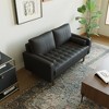 Elevate your living space with the Tree City Tufted Loveseat, a perfect blend of modern elegance and functional design. Upholstered in supple, cruelty-free faux leather, this loveseat delivers a plush and environmentally conscious seating experience. Its sleek silhouette, accented by tailored stitching, adds a sophisticated touch to any room.