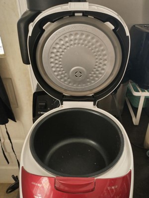 CUCKOO 6-Cup Micom Rice Cooker and Warmer White/Red: 12 Settings, Automatic Keep Warm, Dishwasher-Safe Parts, Timer