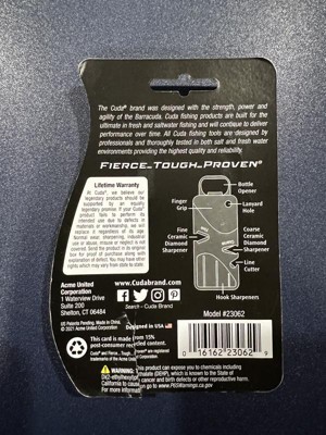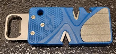 [This review was collected as part of a promotion.] The Cuda Pocket Sharpener may be small but it's got everything needed to keep you focused on fishing and not that dull knife or the dull hooks you brought with you. What I really like best is that with one easy to carry tool you can sharpen different types of knives. You can also get those hooks sharp, cut a new piece of line and open bottles. Very versatile! Add a lanyard or hook a small carabiner through the existing hole to attach it to a gear bag, belt loop or wear around your neck. The only drawback on this tool for me is that the thumb and finger hold needs to have a silicone type covering to make holding it easier. Otherwise I definitely recommend this tool!