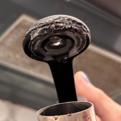 Q: Has anyone else experienced the black paint flaking off the bottom of the pan. I am also wondering if these flakes are dangerous if the fall into your drinks?