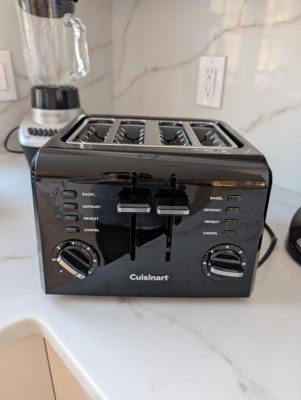 The classic toaster gets a modern update without sacrificing space thanks to the 4-Slice Compact Plastic Toaster by Cuisinart®. The high-lift carriage works whether the toaster is placed sideways or facing forward, to fit anywhere in your kitchen. The generous slots accommodate up to two thick bagel halves and two slices of bread at once, toasted to your satisfaction with dual custom controls with seven different shade settings.