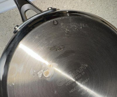 A: The Cuisinart Classic 10” & 12” Stainless Steel 2-Piece Skillet Set features a three-layer base construction, not a fully clad tri-ply body. This means that only the bottom of each skillet consists of three layers: • An aluminum core for rapid and even heat distribution • Encapsulated between layers of stainless steel