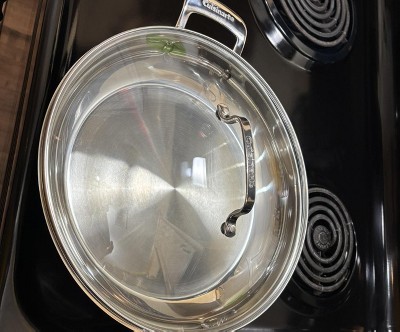 A: Caution should always be exercised when handling Cuisinart cookware, as handles can become hot during use. We recommend using potholders or oven mitts to ensure safe handling and prevent burns.