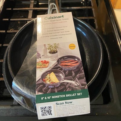 [This review was collected as part of a promotion.] I just got the Cuisinart Classic 2-piece stainless steel and ceramic nonstick fry pan set, and I'm super happy with it so far. I made eggs, and they literally slid around the pan like magic. Both the 8" and 10" pans heat evenly and feel sturdy without being too heavy. Cleanup is ridiculously easy; a quick rinse and wipe and they're spotless. The handles stay cool, and the ceramic surface looks really sleek. I love that it's non-toxic and still performs like high-end nonstick. Totally worth it for everyday cooking!