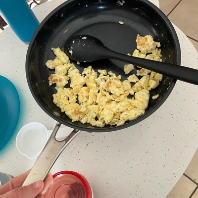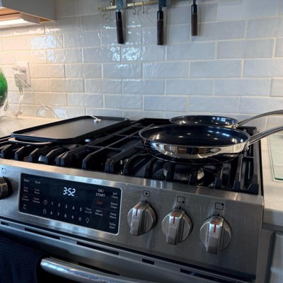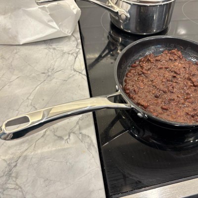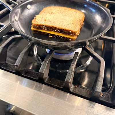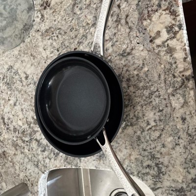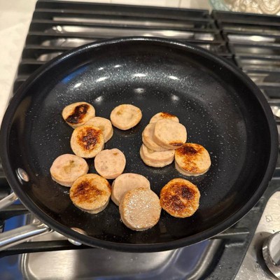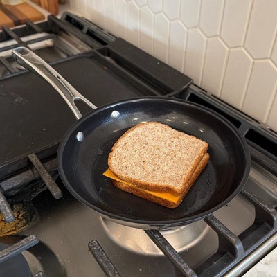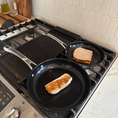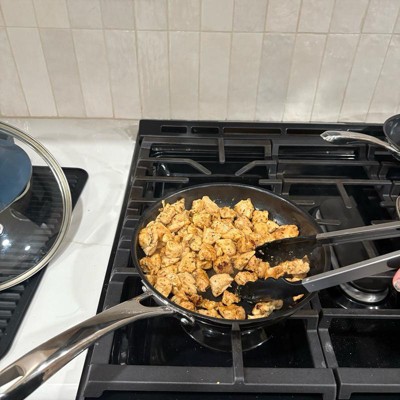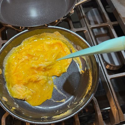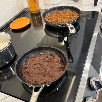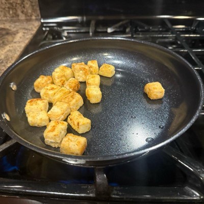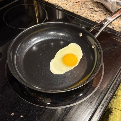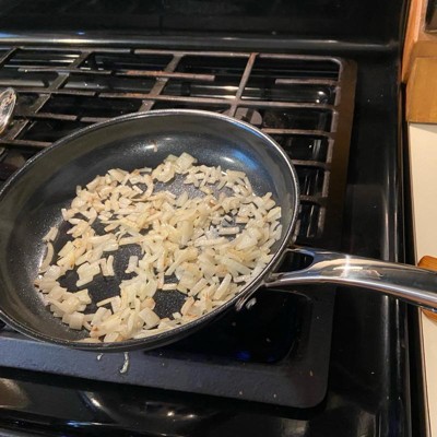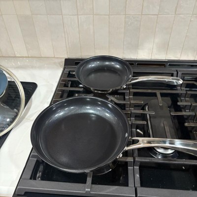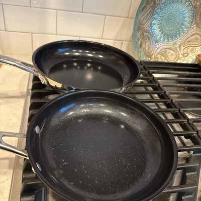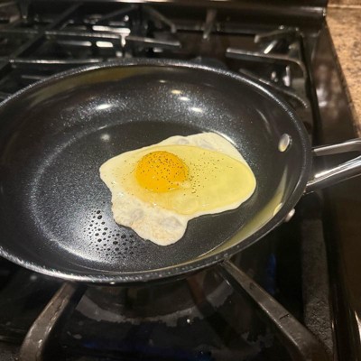 [This review was collected as part of a promotion.] These pans are so amazing! They’re nonstick and the food slides right off. I tried it with fresh cold vegetables from the fridge and a frozen hash brown with zero sticking. The pans heat up quickly and evenly which is a must especially after you put so much time into prepping. They’re really beautiful and look especially nice against my black cooktop with the stainless steel under sides. Definitely something you can be cooking in as guest arrive.