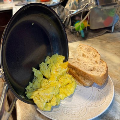 Maybe if you season it… but for me, this pan is not non-stick. A simple scrambled egg takes much scrubbing to clean. And even when I think it’s clean, as it dries there is left over egg. Not a winner.