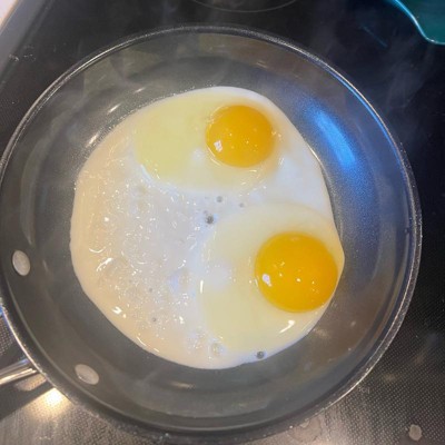 [This review was collected as part of a promotion.] These are great non stick pans, and my food cooked very evenly and without any problems with sticking to the pan. The 8” size is good for just one or two eggs, and I found it most useful when I was using the other burners and other pans for different things, but since it is equally easy to clean both sizes, I use the 10” more. I am very happy with the quality of the pans and appreciated the two pack.
