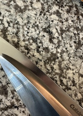 I bought this as a gift for someone who has never had a chef's knife. I wanted something basic just to introduce this person to the joys of using a chef's knife. When I got this out of the package, I was surprised how light it felt compared it to my own 8" knife. The lightness is a bit displeasing but that's probably a matter of taste. I decided to test the knife and was surprised how dull it seemed. I expected any new knife to seem a lot sharper than my well-used, intermittently-sharpened, 15+ year-old knife that I love. But I actually had trouble chopping an onion with the Cuisinart knife. It might partly be the lack of weight to the knife which, again, I'm not used to. I'm thinking I should have bought the same thing I have myself (Mine is a Henckels but I'm not sure I can say that here). I jsut hadn't realized there could be so much difference between them around the same price point!