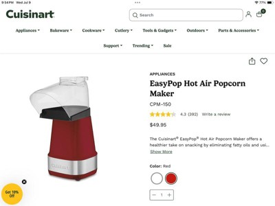 I been buying cuisineart products for 25 years. The hot air popcorn makes is a great product. I fall in love with this product. It makes popcorn so well .l am one of those people think about health first so for that reason you don't have to use any oil or butter so I love absolutely love it.