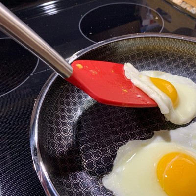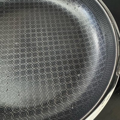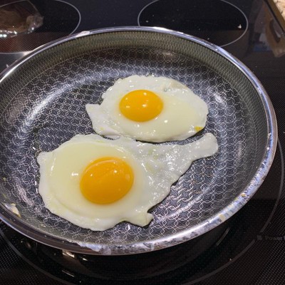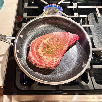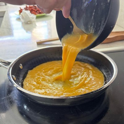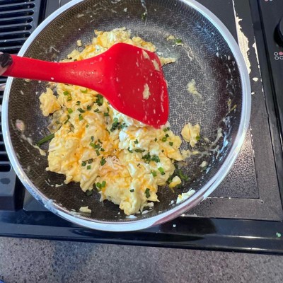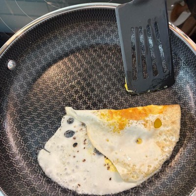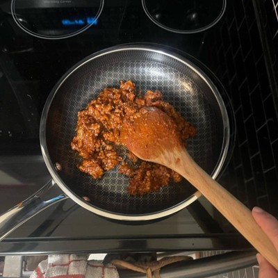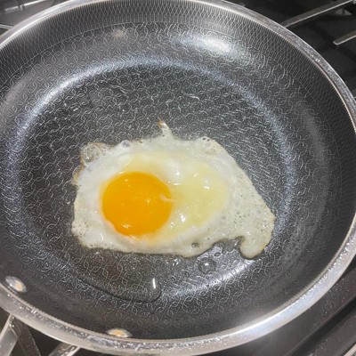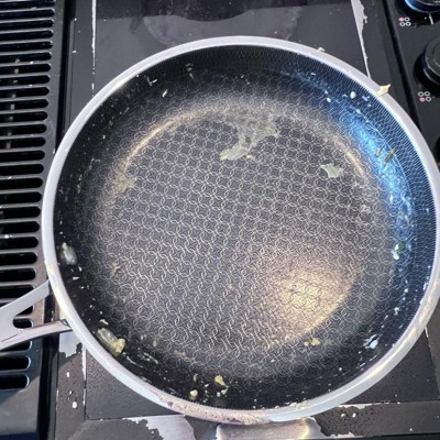 [This review was collected as part of a promotion.] I've been using this pan for a little while now, and honestly, I'm impressed. The hybrid stainless steel + ceramic surface really does make a difference. It heats up quickly and evenly, so nothing has random hot spots or burns on one side. I've made eggs, stir-fry, India Naan, even reheated leftovers, and everything slides off smoothly with very minimal oil.Cleaning is super easy - most of the time I just wipe it with a paper towel, and if something sticks a little, a soft sponge cleans it off right away. The pan also feels sturdy and has a nice weight!
