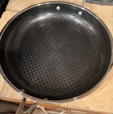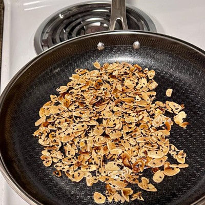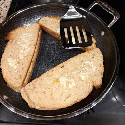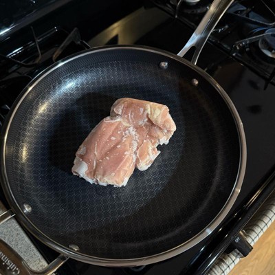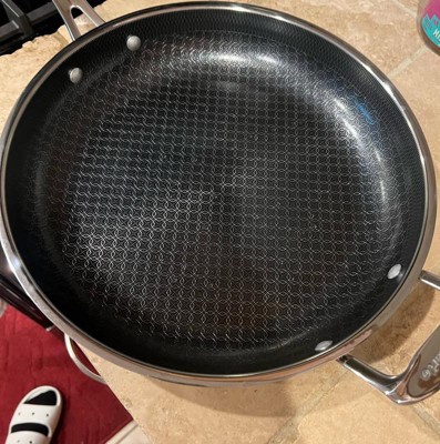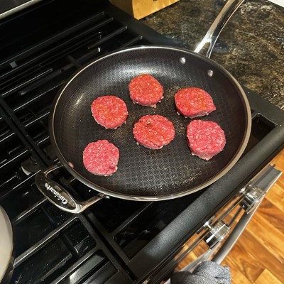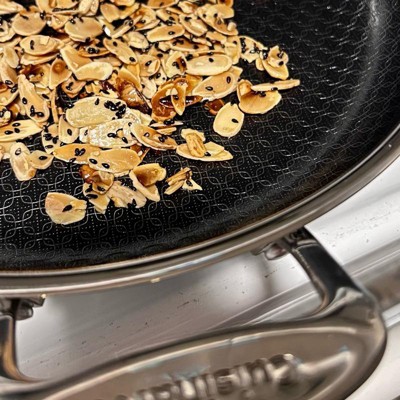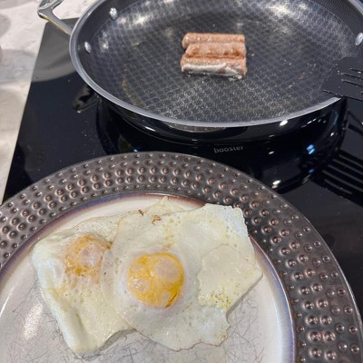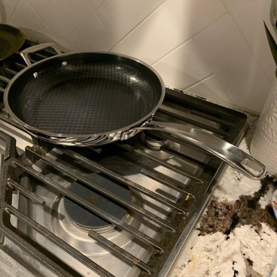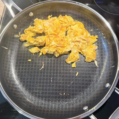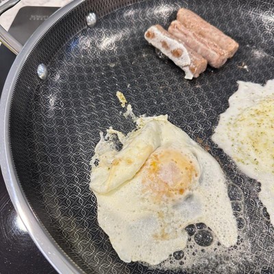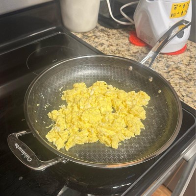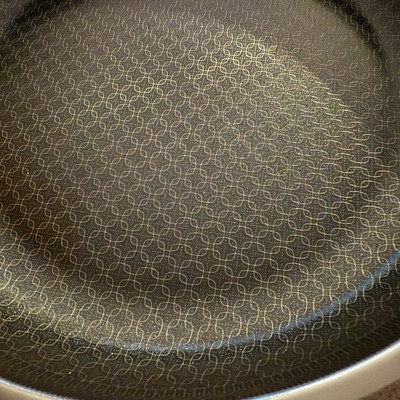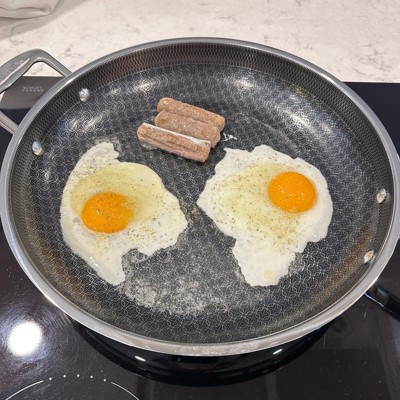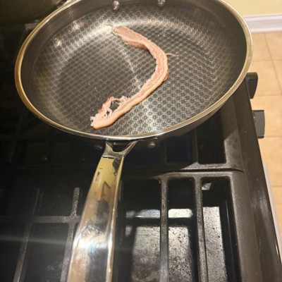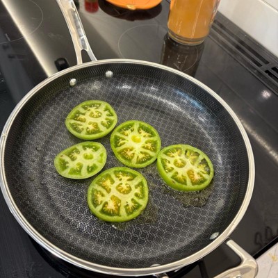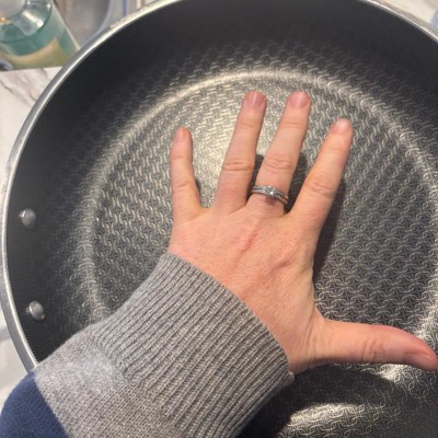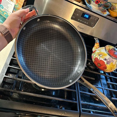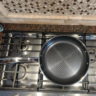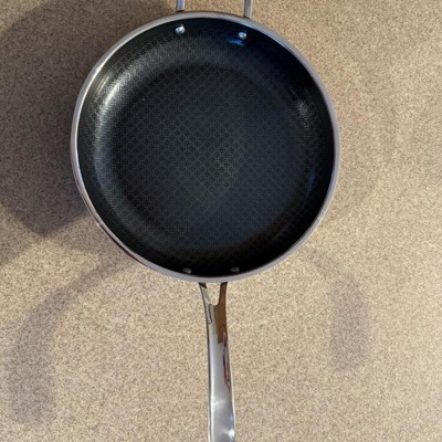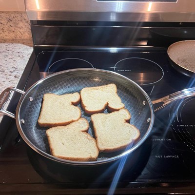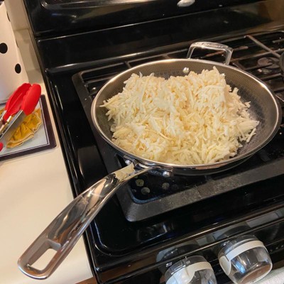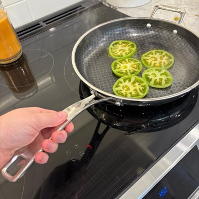 [This review was collected as part of a promotion.] Love this pan. It heats up fast like a stainless steel pan, but cleans up easily like a nonstick. It has a nice, long handle and is asthetically very pleasing to look at with the patterned design on the inside of the pan. I love that it can go in the dishwasher. The size is extremely functional. Not too big, not too small. Works great on our induction stovetop with no issues.