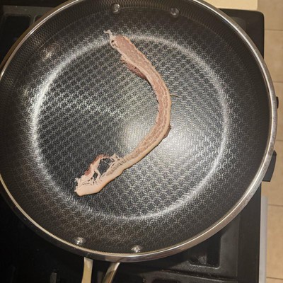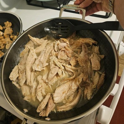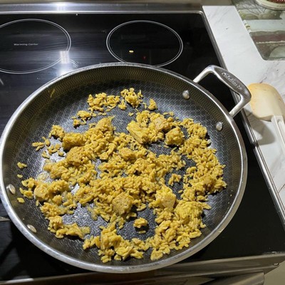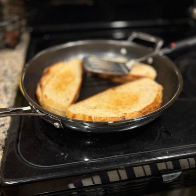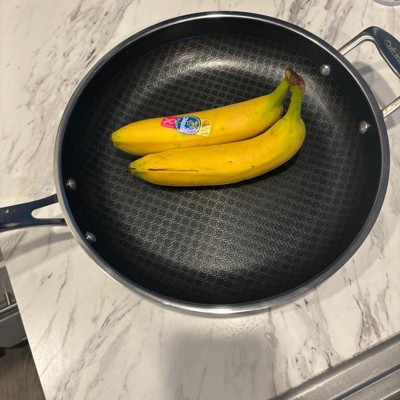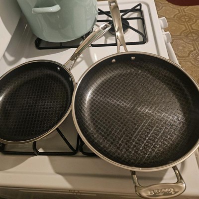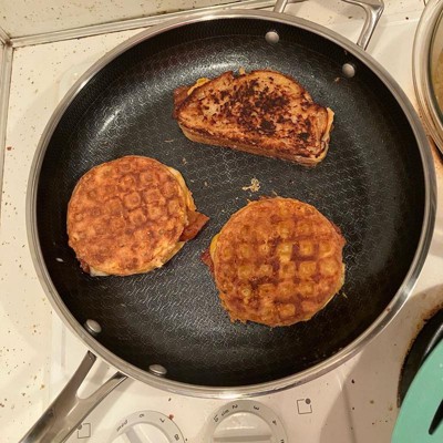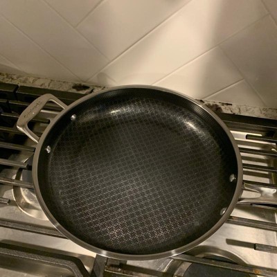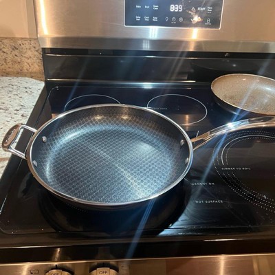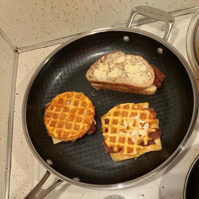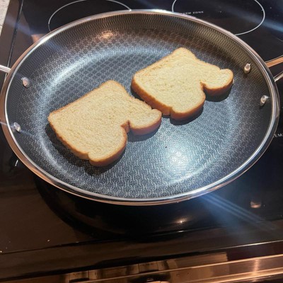 [This review was collected as part of a promotion.] I've been wanting to try hybrid pans for a while now, but wasnt sure if it was worth the investment, so this was a much appreciated opportunity! First thing I'll note, it is heavy. I'm sure it's due in fact to the quality because this looks, cooks, and feels top-notch. This 12" fry pan is big enough to tackle your family size meals. It has a longer handle like you'd typically find, and then a smaller one on the other side. I was hesitant with the company claiming the handles stays cool to the touch while in use due to the metal components, but pleasantly surprised when I touched it, as seen in the pics, that the handles held no heat! This pan helped cook our food evenly and quickly, and the non stick surface made clean up a breeze! This will be a "go to" pan for years to come!