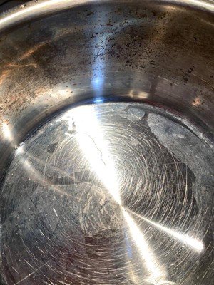 It’s been about 6 months now and the pot has deep grey pits already that is disappointing for a professional cookware. Deeply disappointed with purchase.