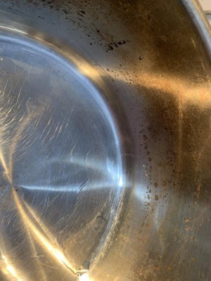 Great pan with excellent heating properties. We use with induction cooking only and it works perfectly. As with all our stainless cookware, cleanup with Bar Keepers Friend yields a like new pan with no stains or water marks.