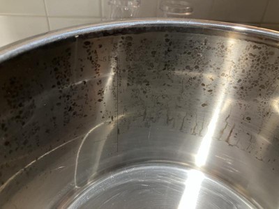 There’s dark spots on inside of pot after first time used. Same dark spot are visible one lid. Very disappointing.