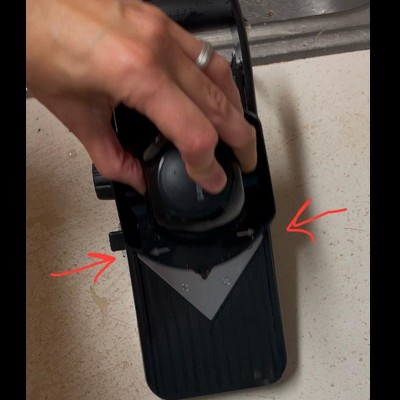 A: Always use the food holder when slicing. 2. Using a mandoline takes some practice. You may not get perfect results right away, but after a few tries, you will be slicing like a pro. 3. To prevent foods from sticking to the mandoline surface when cutting, lightly grease the mandoline with a little cooking oil. 4. Different foods require different pressures when cutting. Softer foods, such as tomatoes, require less pressure, while harder foods, such as butternut squash, call for more pressure. 5. It is easiest to cut foods that are flat on the bottom. Trim rounded edges so they are flush with the cutting surface. 6. Prepare a quick salad or stir-fry with a mix of julienned and sliced vegetables. 7. Prepare fruit or vegetable platters in a flash for your house guests. 8. For coleslaw in a minute, set the control knob to 2. Slice a mix of cabbages and julienne carrots to make a colorful salad tossed with your favorite dressing.